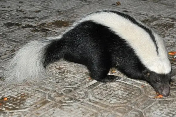 O cangambá (Conepatus semistriatus) é um mamífero de porte médio que mede entre 30 a 50 centímetros de comprimento corporal, com uma cauda que pode adicionar mais 15 a 25 centímetros ao seu tamanho total. Seu peso varia tipicamente entre 1,5 a 4 quilogramas, sendo os machos geralmente maiores que as fêmeas. A característica mais marcante deste animal é sua pelagem distintiva: o corpo apresenta coloração predominantemente preta com duas faixas brancas que se estendem desde a cabeça até a base da cauda, criando um padrão único que facilita sua identificação mesmo à distância.